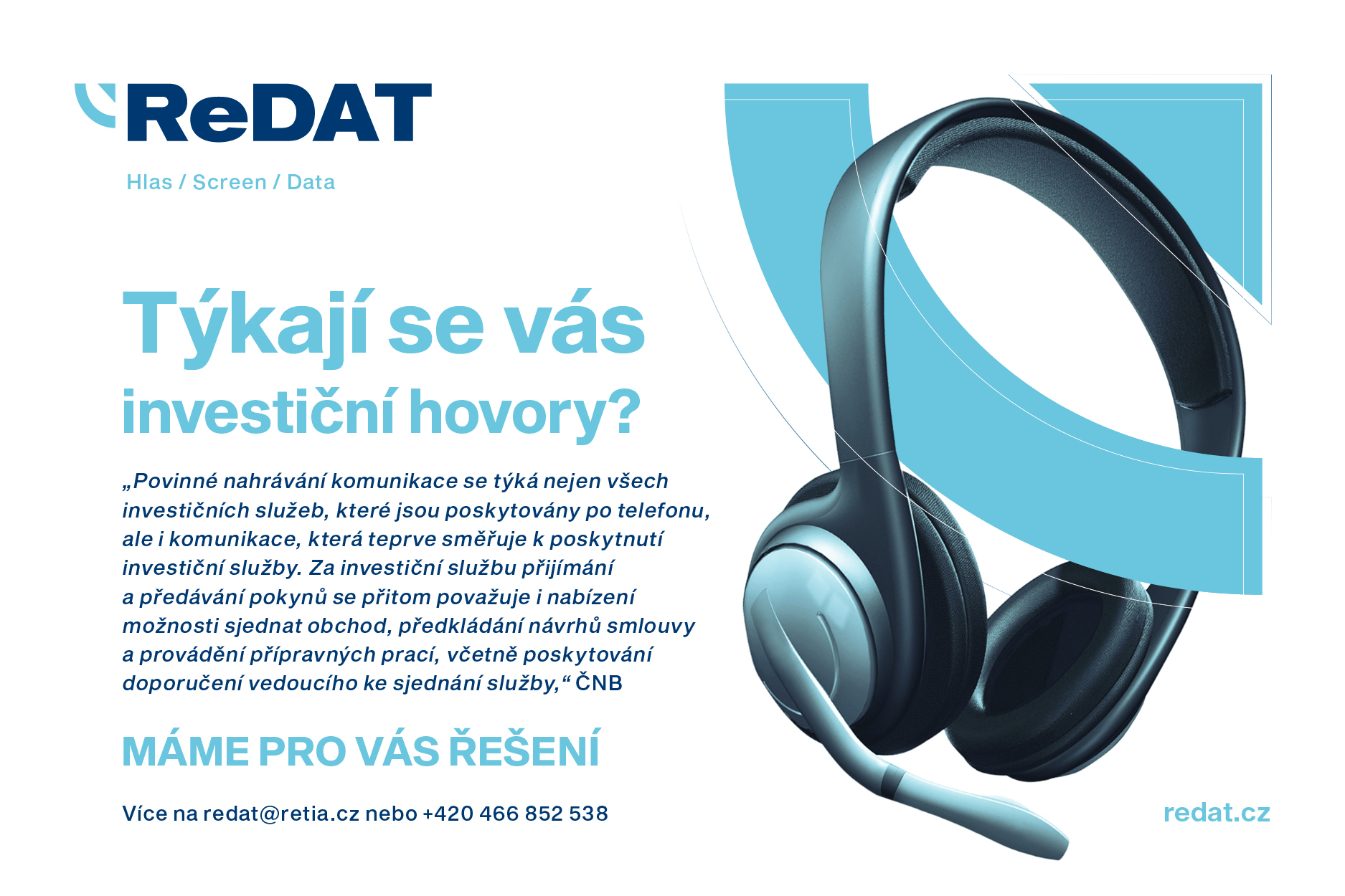 Dne 16. 12. 2022 vydal regulátor trhu ČNB stanovisko k regulaci finančního trhu „Přístup ČNB k záznamům telefonických hovorů a elektronické komunikace při poskytování investičních služeb“. Z tohoto stanoviska vyplývá, že obchodníci s cennými papíry včetně bank, investičních společností a zprostředkovatelů musí nahrávat veškerou komunikaci, kterou s klienty vedou ohledně investičních služeb a které by nakonec mohly vést k uskutečnění obchodu.
